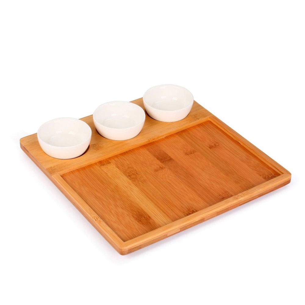O happy hour vai ser na sua casa? Então a Petisqueira de Bambu e Cerâmica não pode faltar. Confeccionada em bambu, material resistente e com agentes bactericidas que previnem o aparecimento de fungos e bactérias, e com três bowls de cerâmica ela é perfeita para você.