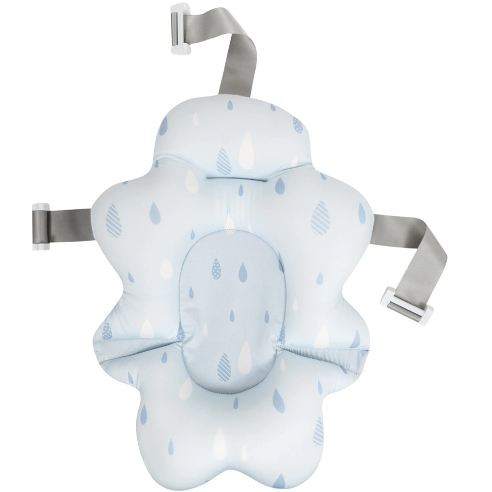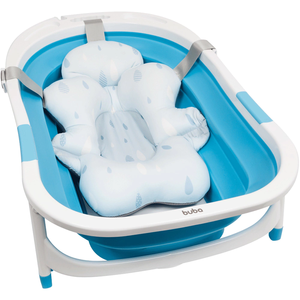 A almofada de banho evita que o bebê escorregue e dá suporte para a mamãe