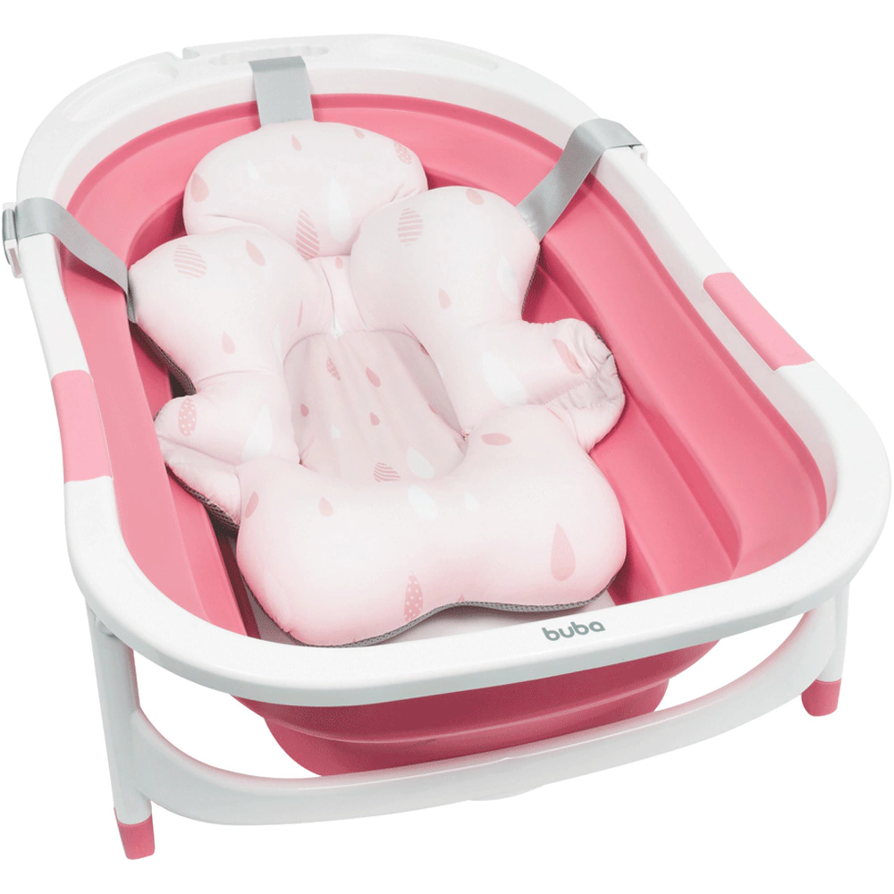 A almofada de banho evita que o bebê escorregue e dá suporte para a mamãe