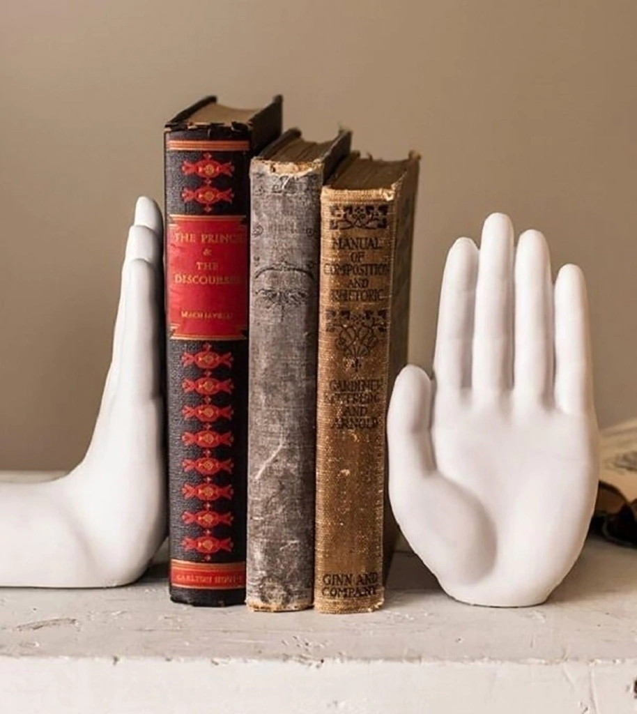 Com visual semelhante a duas mãos, o aparador de livros Hands esbanja originalidade e personalidade. Perfeito para organizar livros em prateleiras ou armários, este item pode ser a solução ideal para compor a organização e ao mesmo tempo a decoração de diversos ambientes da casa ou escritório.