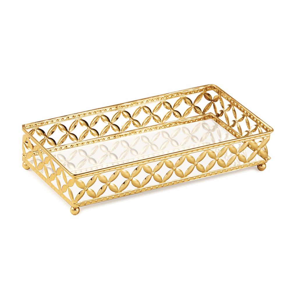Essa Bandeja Dourada Espelhada, pode ser usada nos banheiros, especialmente os mais compactos, onde o uso de bandejas pode ajudar na organização e aproveitamento do espaço.