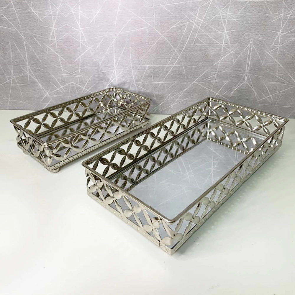 Essa Bandeja Prata Espelhada, pode ser usada nos banheiros, especialmente os mais compactos, onde o uso de bandejas pode ajudar na organização e aproveitamento do espaço.