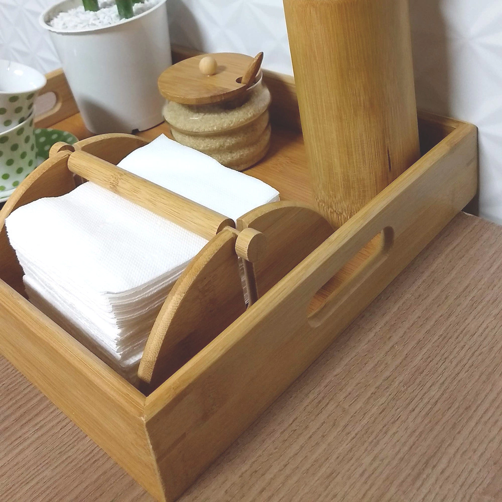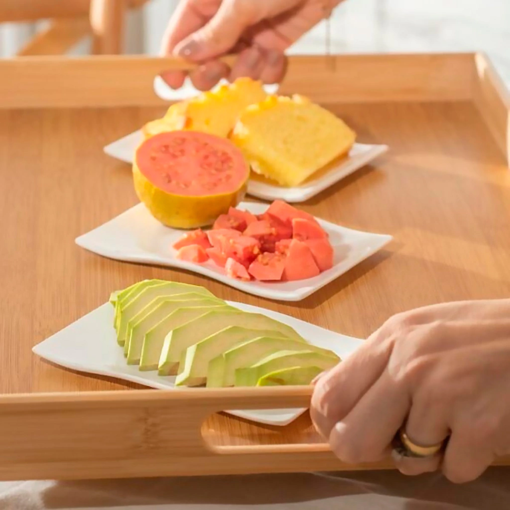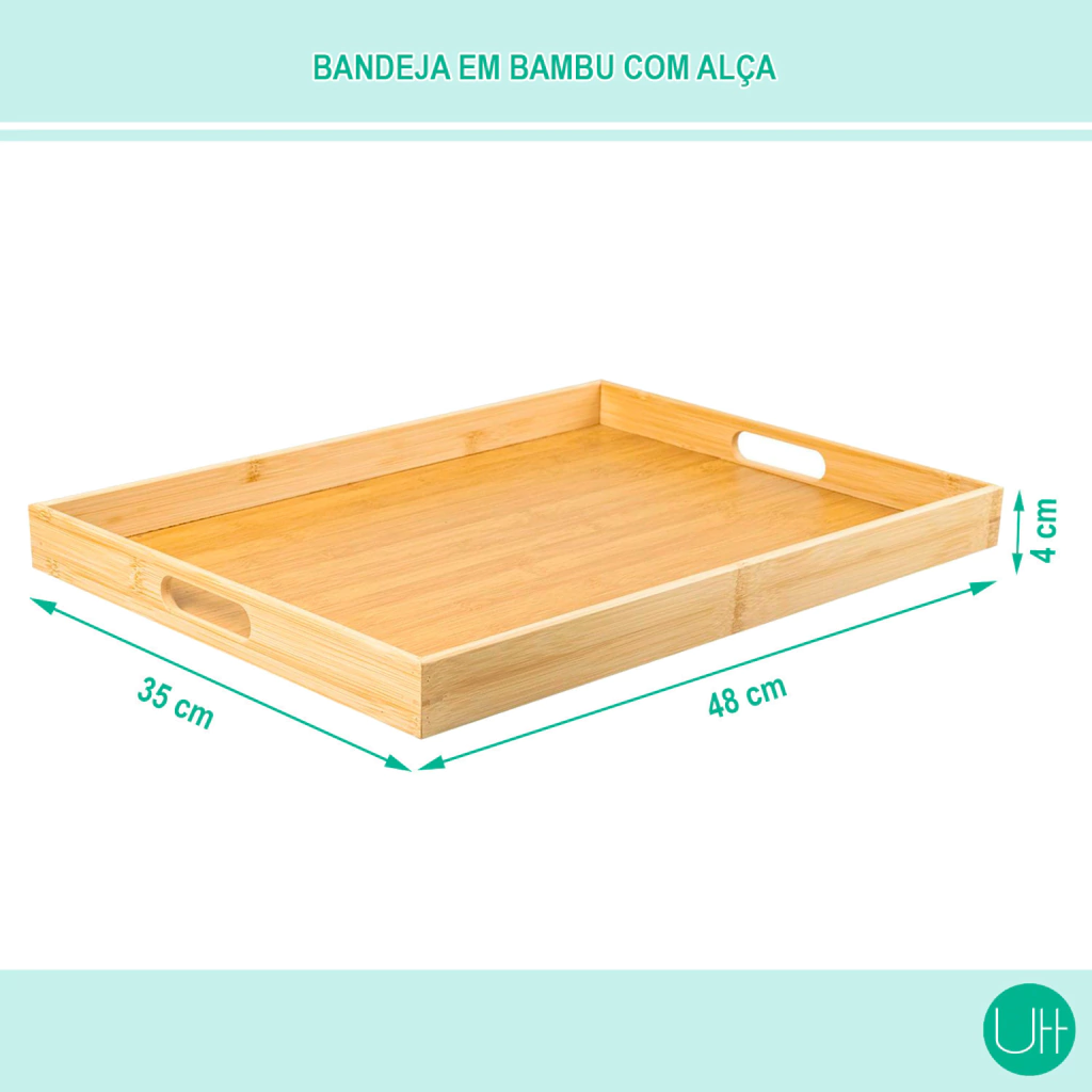 1 Bandeja retangular em bambu com alças 48x35x4cm