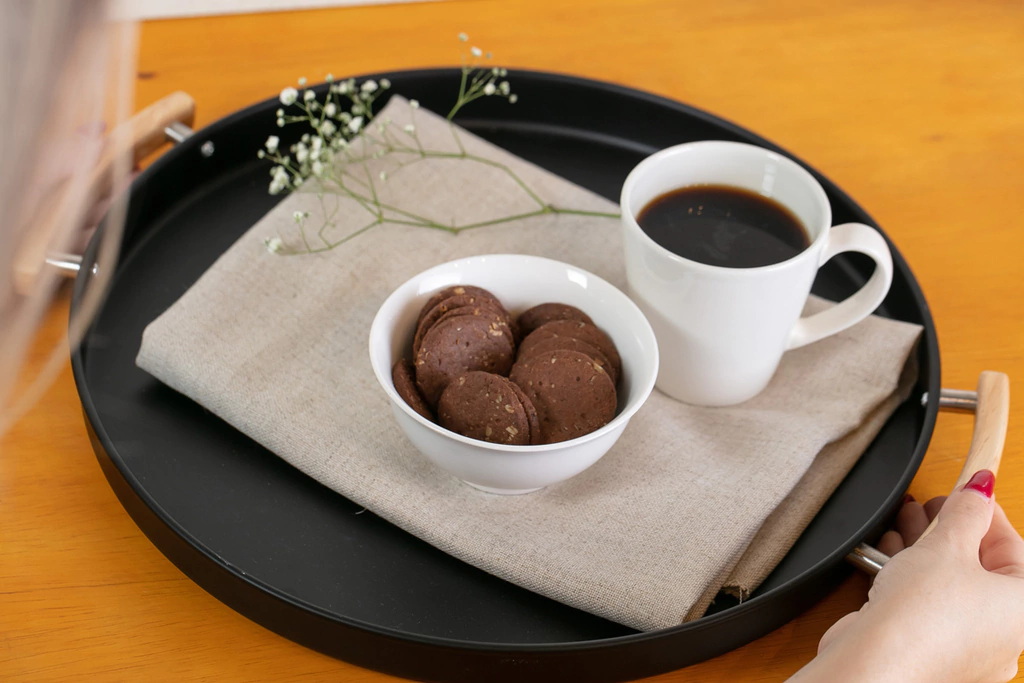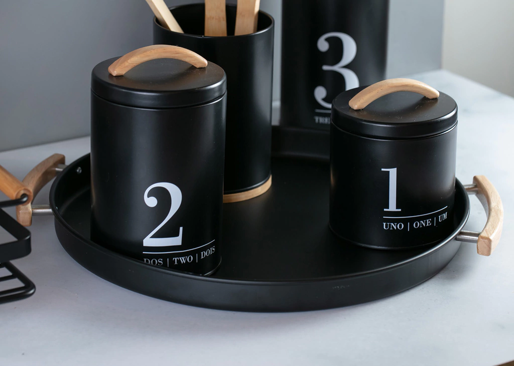 Bandeja Metalla da Yoi em metal na cor preta com alça em madeira. Sirva e decore com essa linda bandeja.