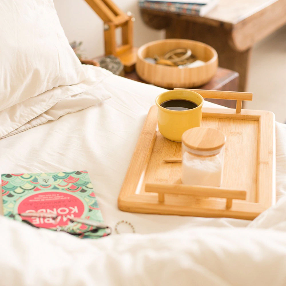 Bandeja de Bambu com borda e alças. Um item decorativo e funcional, pode ser usado na cozinha para organizar potes e utensílios, na decoração, no cantinho do café e também no bar para organizar bebidas e taças. O bambu da um toque moderno e sofisticado ao ambiente deixando seu lar ainda mais atraente e aconchegante.