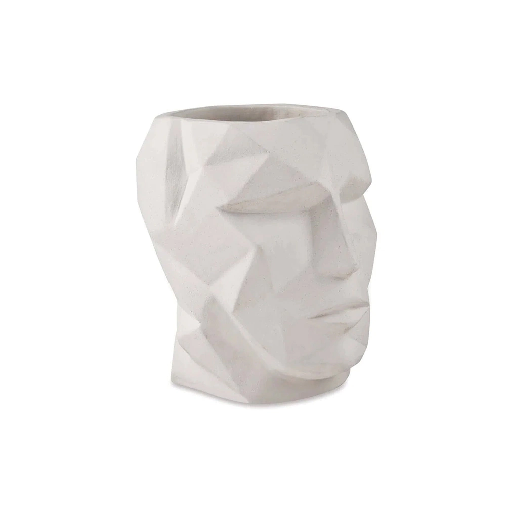1 Cachepot Branco Rosto Geométrico em Cimento P