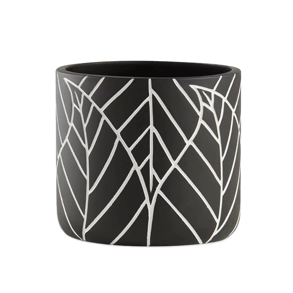 1 Cachepot em Cimento Folhas Preto e Branco P