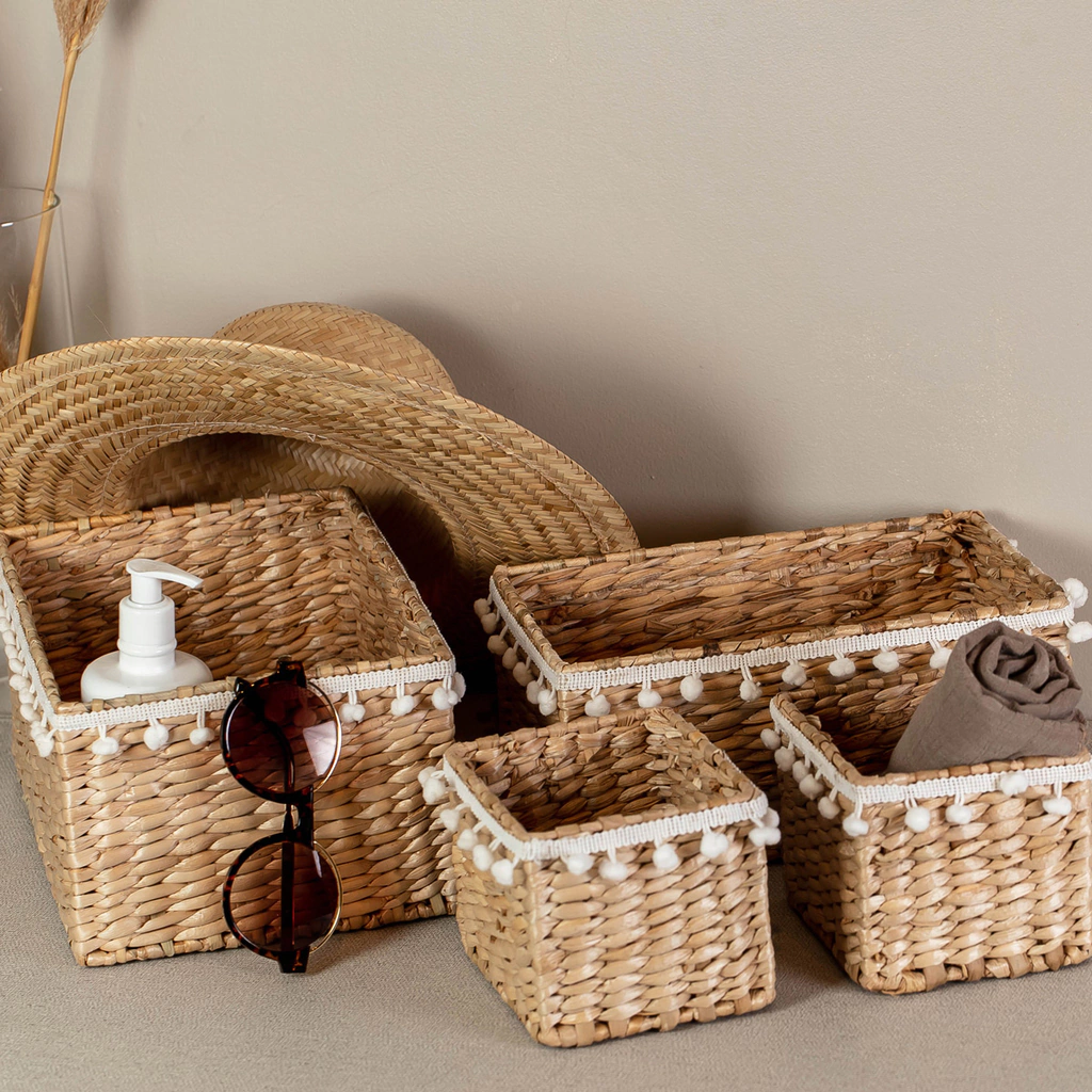 Para ambientes combinados ao estilo Boho Chic em sua versão mais rústica, a fibra natural confere acolhimento ao ambiente ideal para uso decorativo como cachepots para plantas ou armazenamento de revistas, mantas e objetos.