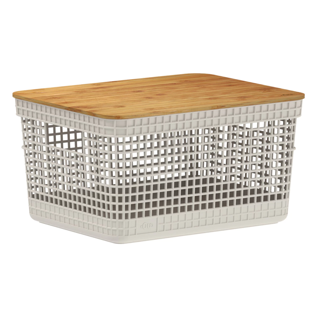 1 Cesto Organizador Grid com Tampa de Bambu 8 Litros