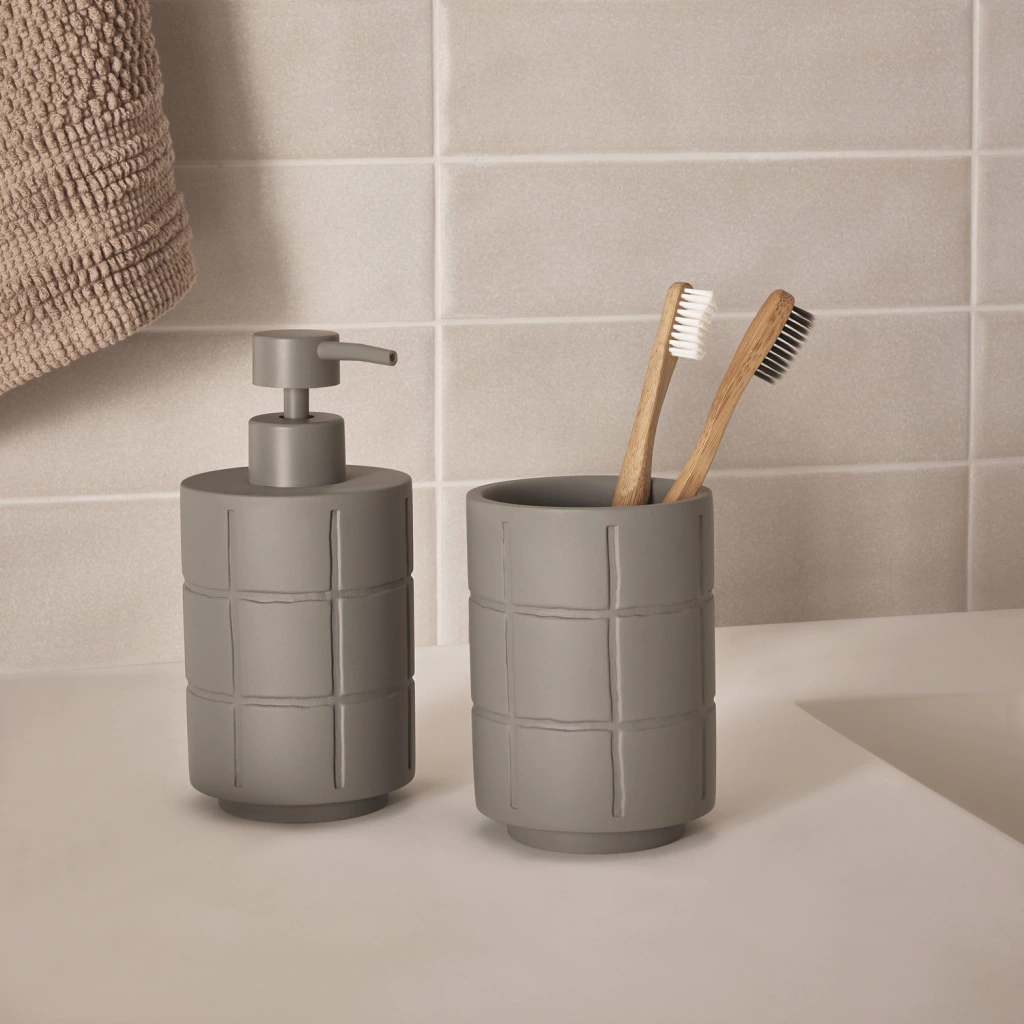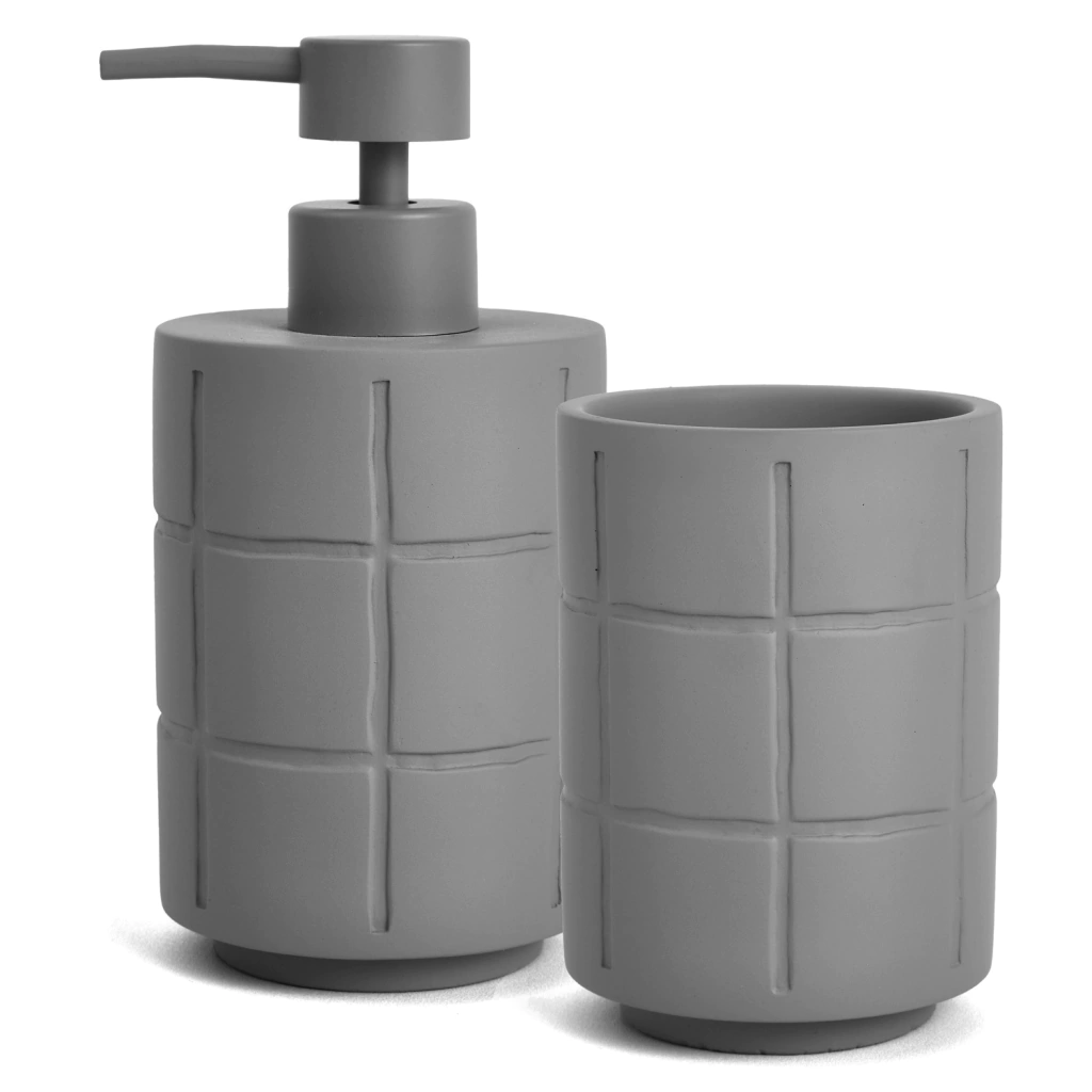 Pequenos detalhes na decoração do banheiro fazem toda a diferença! O porta-sabonete líquido em cimento renova e diferencia o ambiente. Com estilo de linhas e cruzamentos do jogo da velha com um toque sofisticado, o design dá um toque de modernidade ao banheiro ou lavabo!