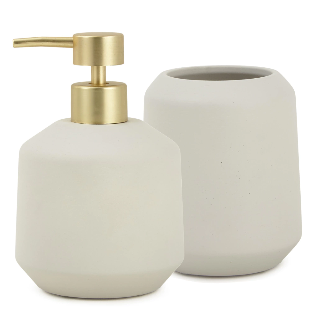 Pequenos detalhes na decoração do banheiro fazem toda a diferença! O porta-sabonete líquido em cimento renova e diferencia o ambiente. Com design clean e sofisticado, trazendo seu toque de modernidade ao banheiro ou lavabo!