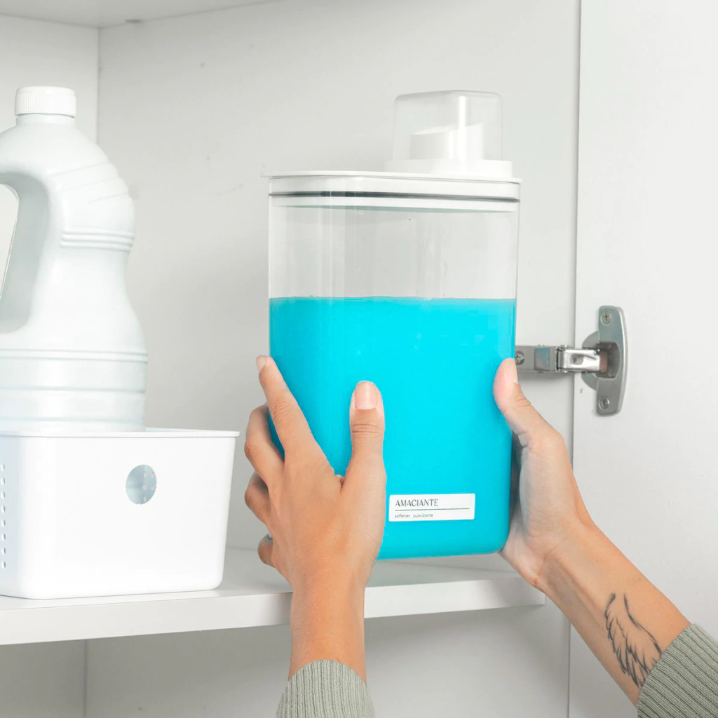 O Dispenser Flow é a solução ideal para armazenar uma variedade de produtos de limpeza, como amaciante, sabão em pó e desinfetante. Com sua capacidade de 2,3L, oferece praticidade e funcionalidade para o dia a dia. A tampa medidora com gravação de gradação em mL facilita a dosagem precisa, enquanto a aba ergonômica permite uma abertura fácil e segura. O anel de vedação garante que o recipiente permaneça fechado, evitando vazamentos, e o sistema de caimento interno ajuda a retornar o líquido que sobra, evitando desperdícios. Além disso, a transparência do dispenser facilita a gestão visual dos produtos de limpeza, mantendo a lavanderia organizada e eficiente.