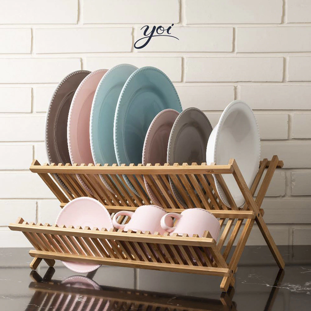 O Escorredor de pratos e louças é confeccionado em bambu, possui design moderno e capacidade para até 21 pratos. É leve e resistente, e conta ainda com sistema dobrável. Possui andar inferior, ideal para o suporte de talheres, copos, canecas e outros utensílios.