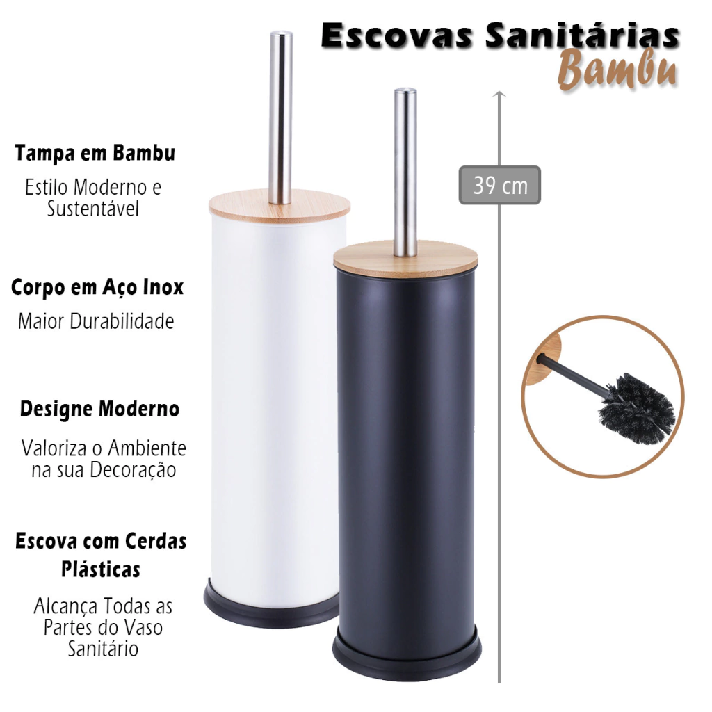 Elegância Funcional: A escova sanitária é não apenas funcional, mas também uma peça de decoração elegante para o seu banheiro.