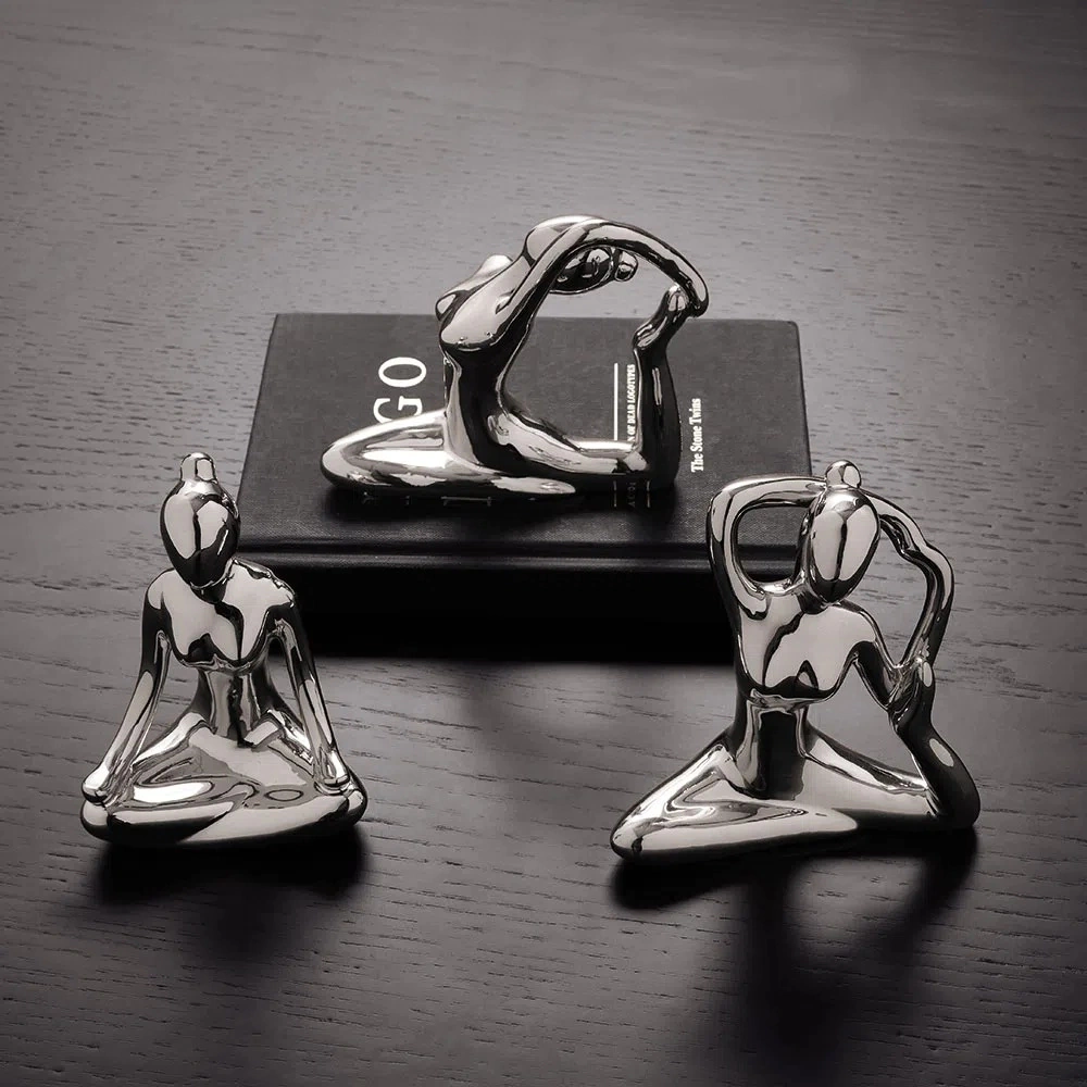 1 Escultura Yoga Prata Porcelana Mart