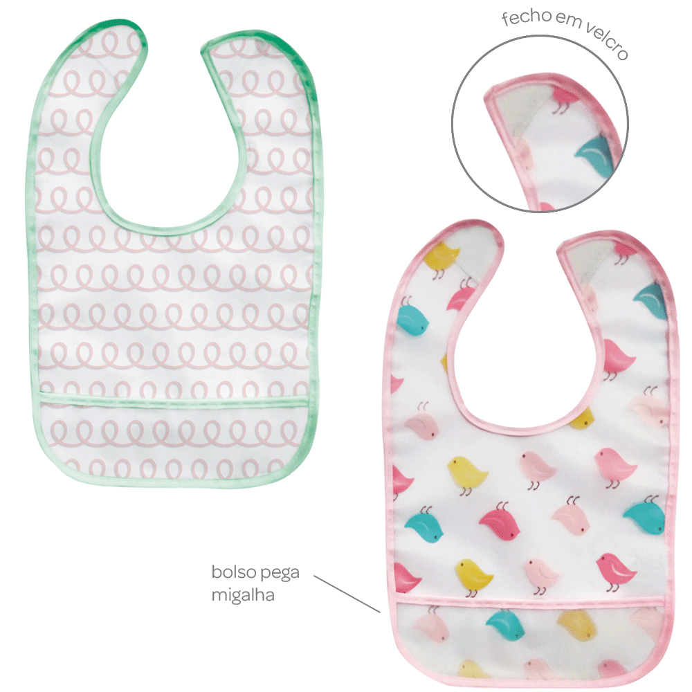 2 Babadores com Bolso Cata Migalhas Passarinho