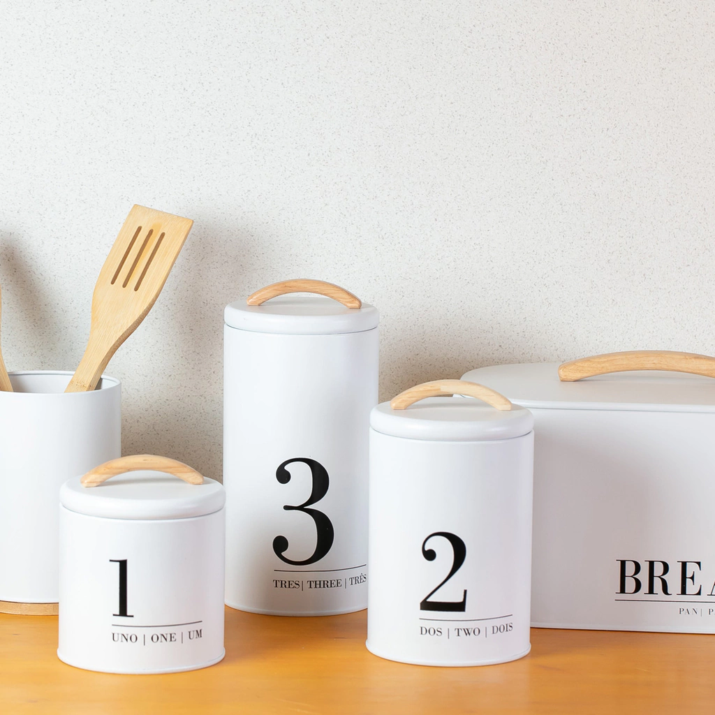 Lata Metalla da Yoi em metal na cor branca com escrita na cor preta, tampa em metal com vedação de silicone e alça em madeira, pintura interna da lata na mesma cor. Organize e decore sua cozinha com essa linda lata. Ideal para armazenar mantimentos secos, por ter uma ótima vedação conserva os alimentos por mais tempo.