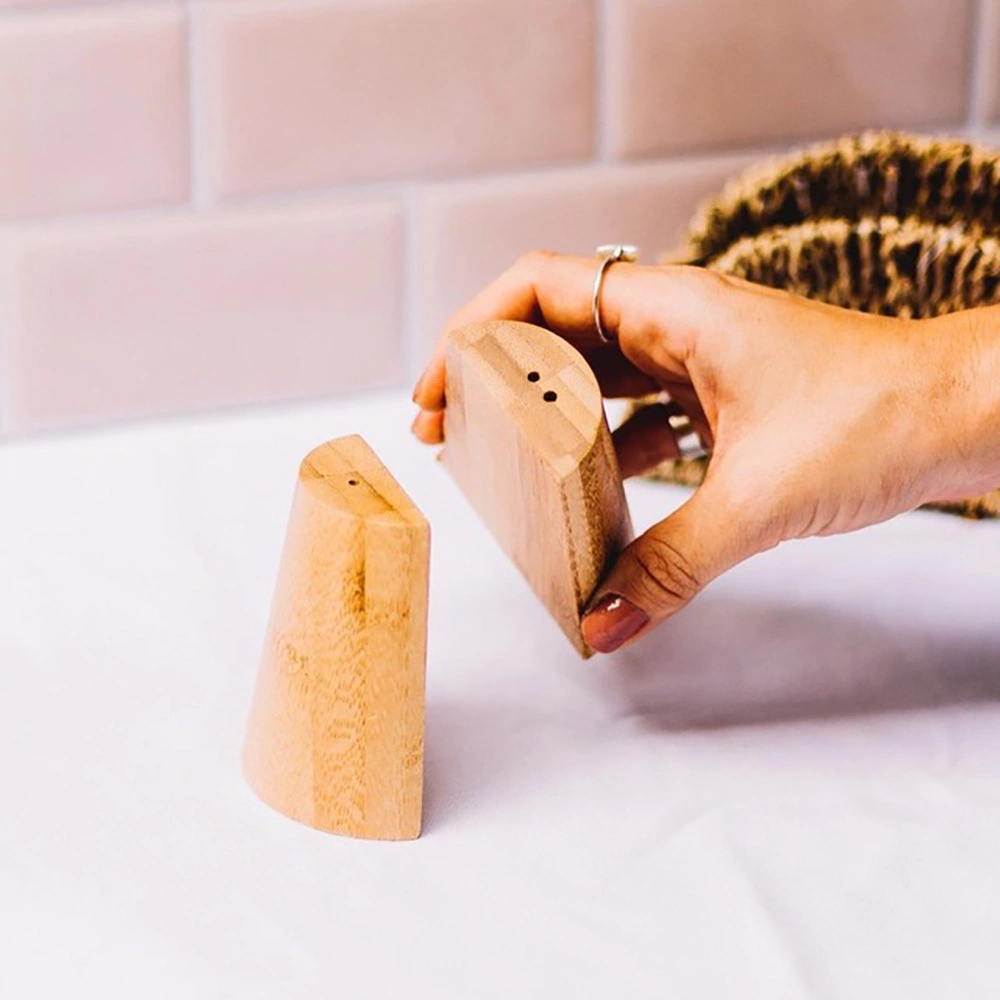 Esse é o conjunto de saleiro e pimenteiro mais sofisticado que você verá! Ele parece um só, mas são dois bem juntinhos, um com um buraco de saída duplo para o sal, o outro com saída única para a pimenta. Por ter um estilo diferente dos saleiros e pimenteiros comuns, ele pode ser usado como peça decorativa. Além disso, é super prático, do jeito que amamos, dois produtos em um só, que encaixa perfeitamente e ocupa menos espaço na sua mesa.
