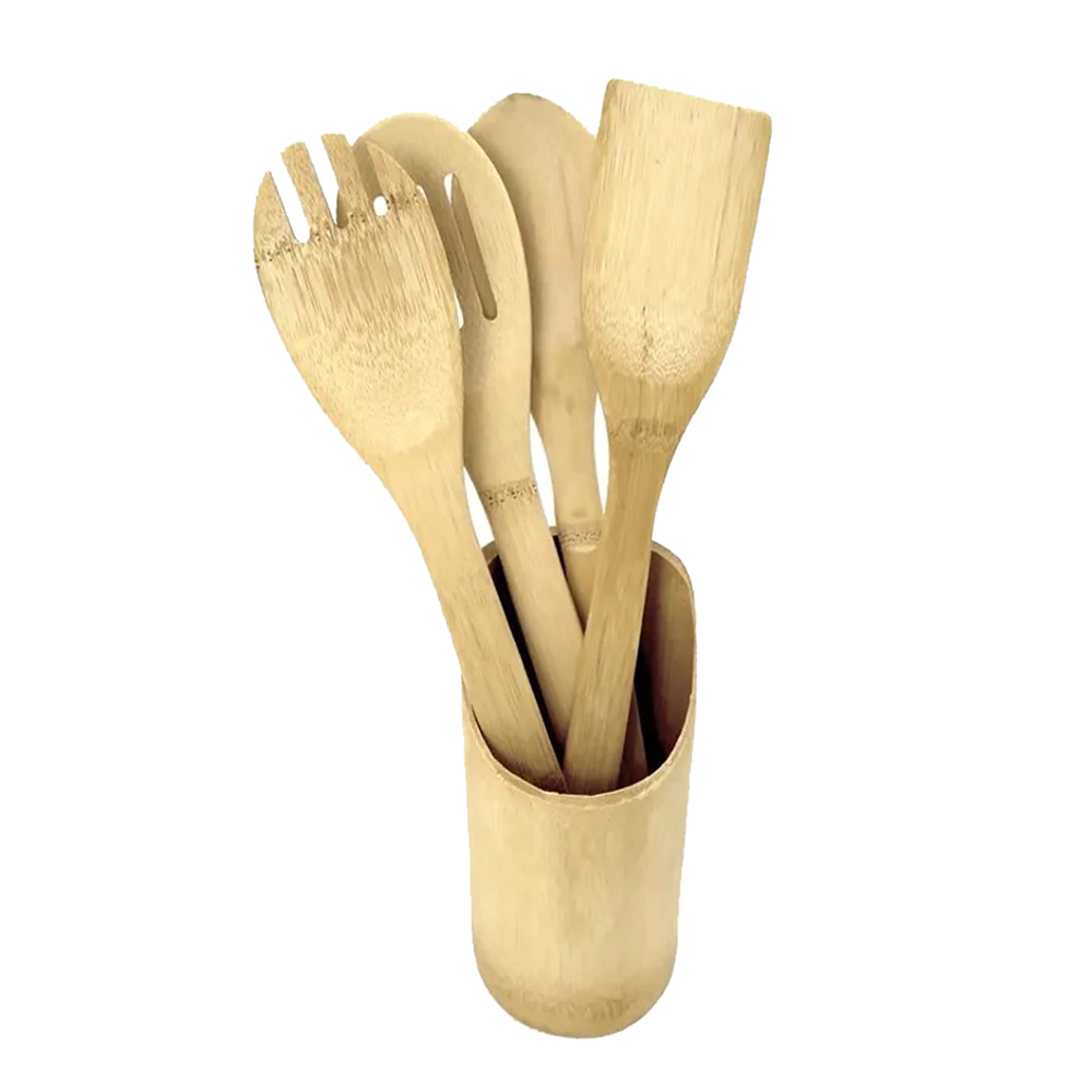 Este jogo de utensílios em bambu com base para guardar e decorar a sua cozinha, irá transformar o jeito que você serve e prepara suas refeições na sua casa, seja em um momento especial ou nos almoços diários.
