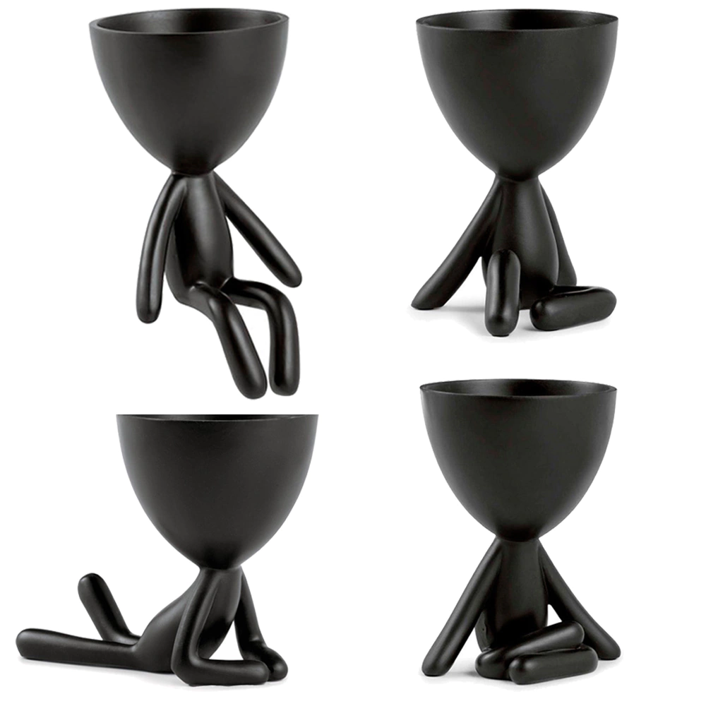 Vaso Cachepot Bob Preto em Poliresina, linda peça decorativa para diversos ambientes de sua casa, pode ser usada com arranjo de flores naturais ou artificiais ou folhagens e ainda sozinho sem nada, possui 4 modelos, este é o modelo perna cruzada, também tem 4 cores diferentes.