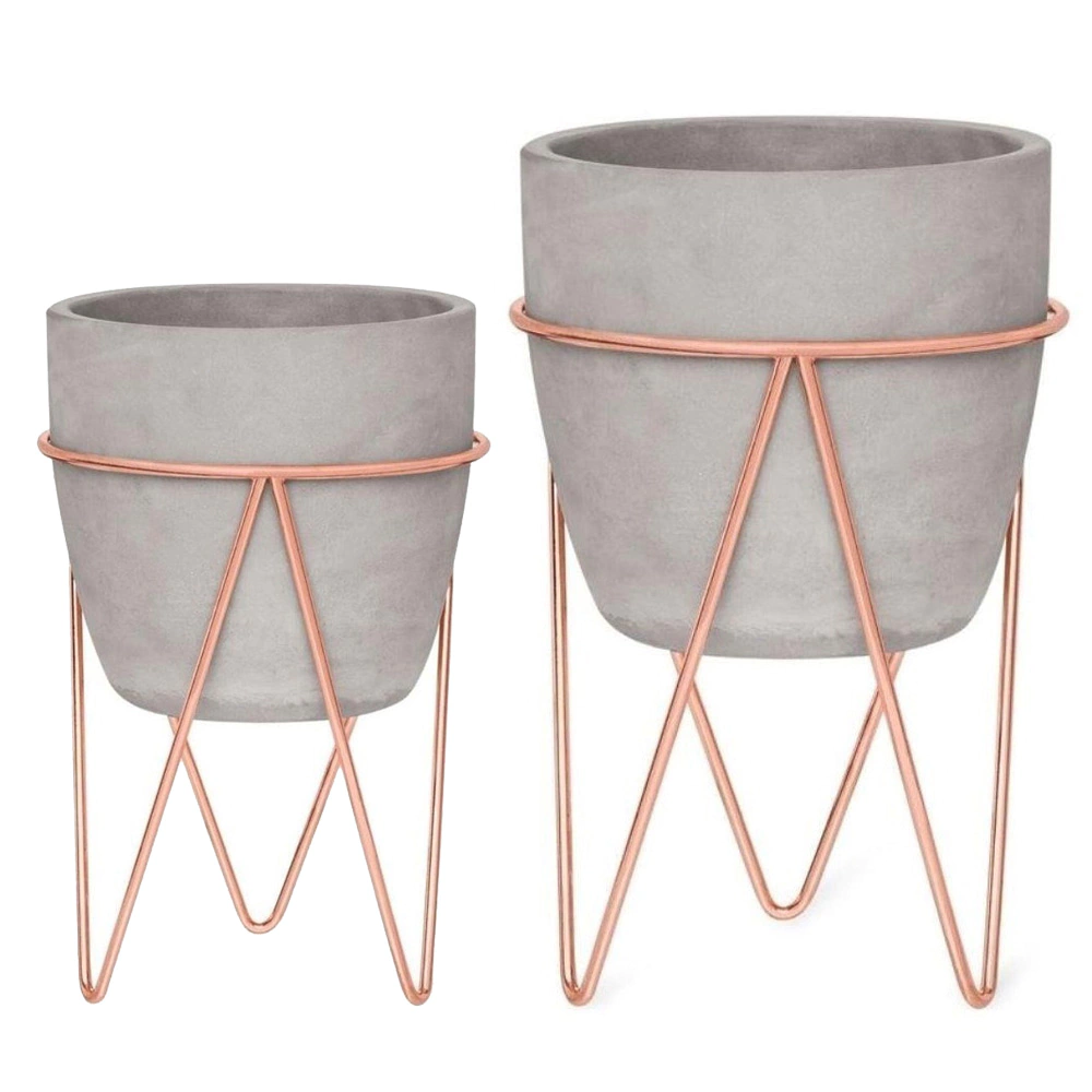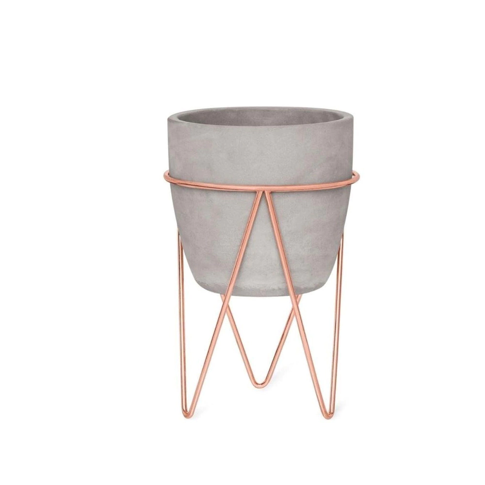 1 Vaso Grande em Cimento com Suporte Rose Gold