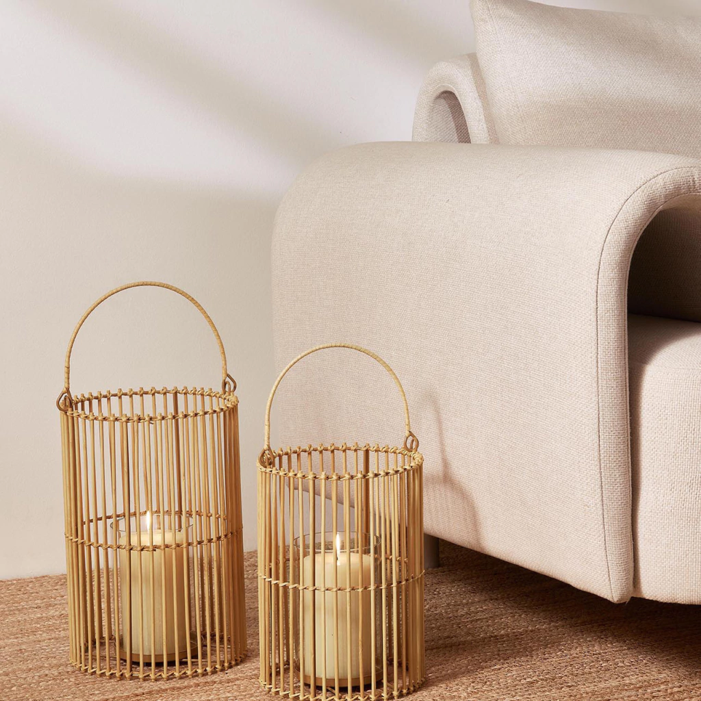 A Lanterna de Chão em Bambu com Porta Vela da Mart Collection traz aconchego, sofisticação e uma iluminação suave para seu lar. Ideal para criar um ambiente romântico e íntimo em qualquer cômodo, é perfeita para decoração de casamentos, jardins, varandas e jantares românticos.