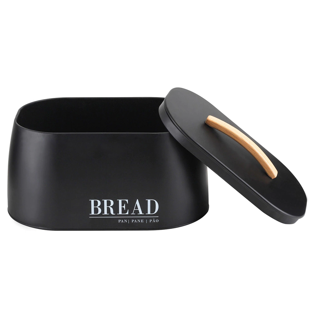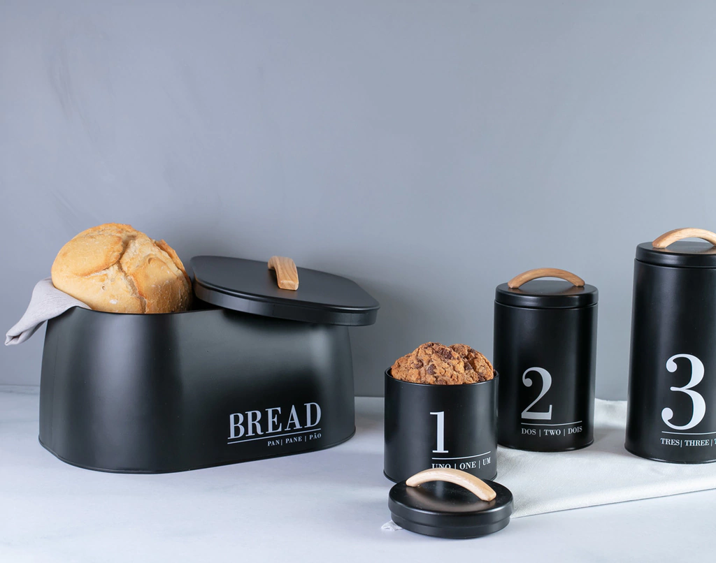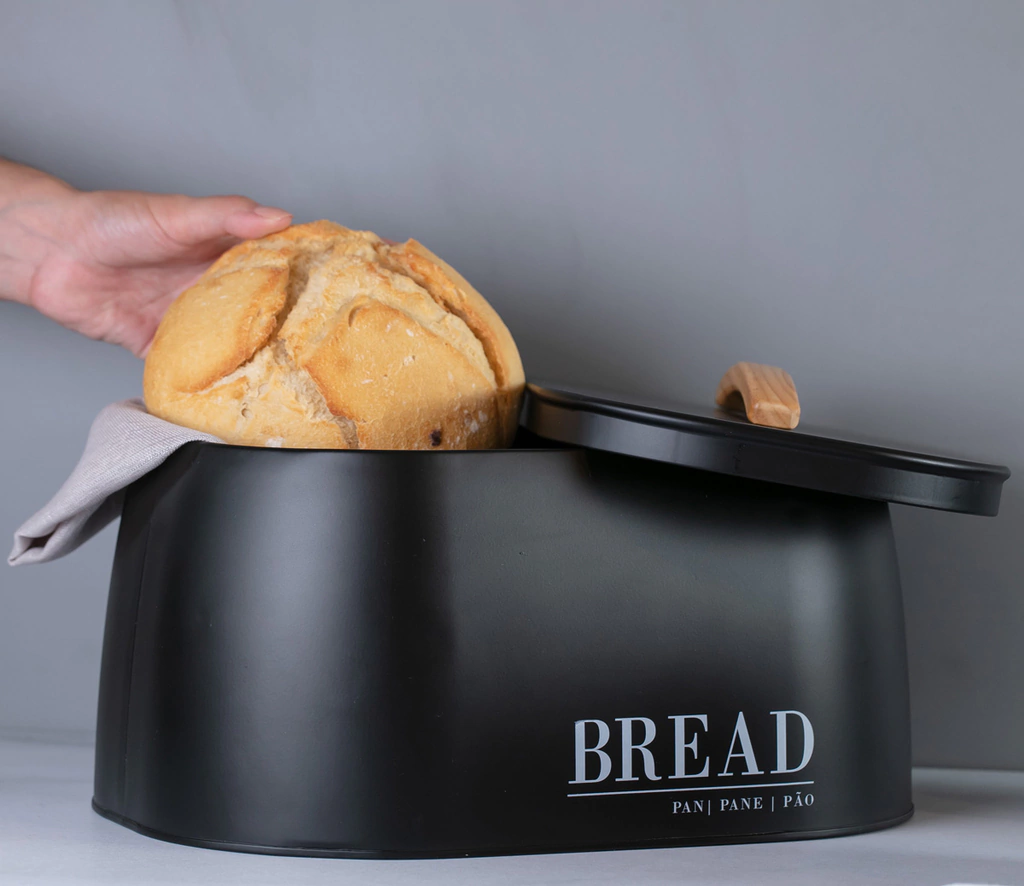Lata Metalla da Yoi em metal na cor preta com escrita Bread na cor branca, tampa em metal com alça em madeira, pintura interna da lata na mesma cor. Organize e decore sua cozinha com essa linda lata. Ideal para armazenar seus mantimentos.