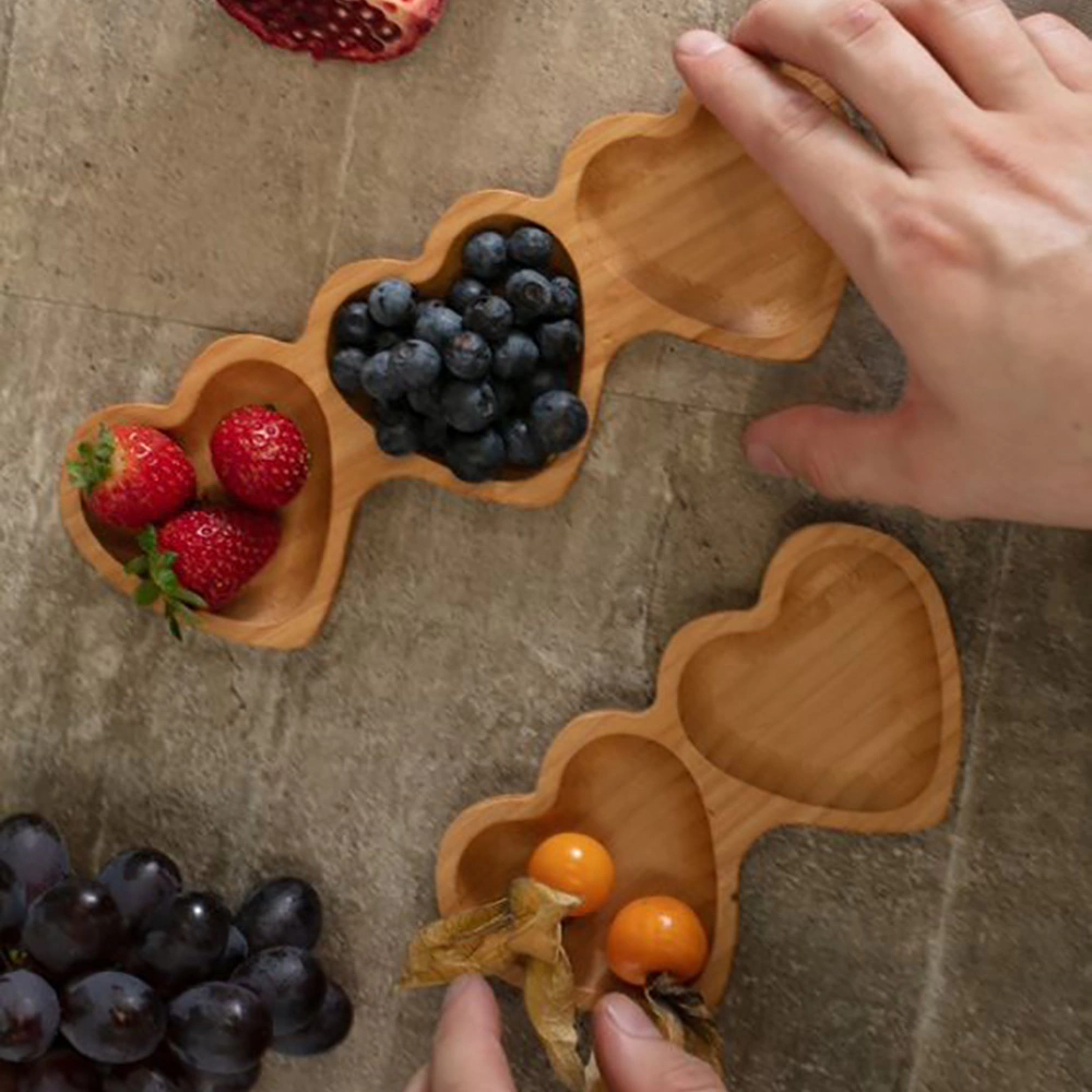 1 Mini Petisqueira Coração Dupla em Bambu