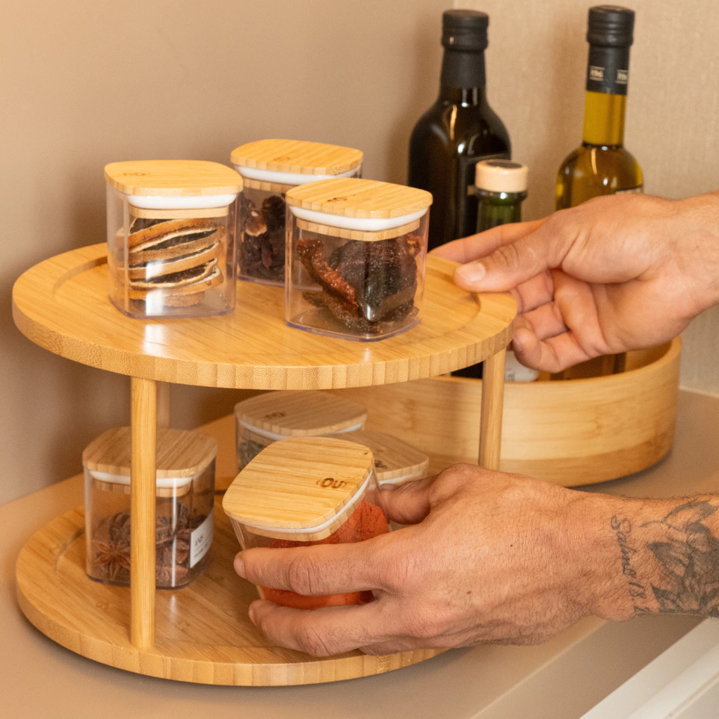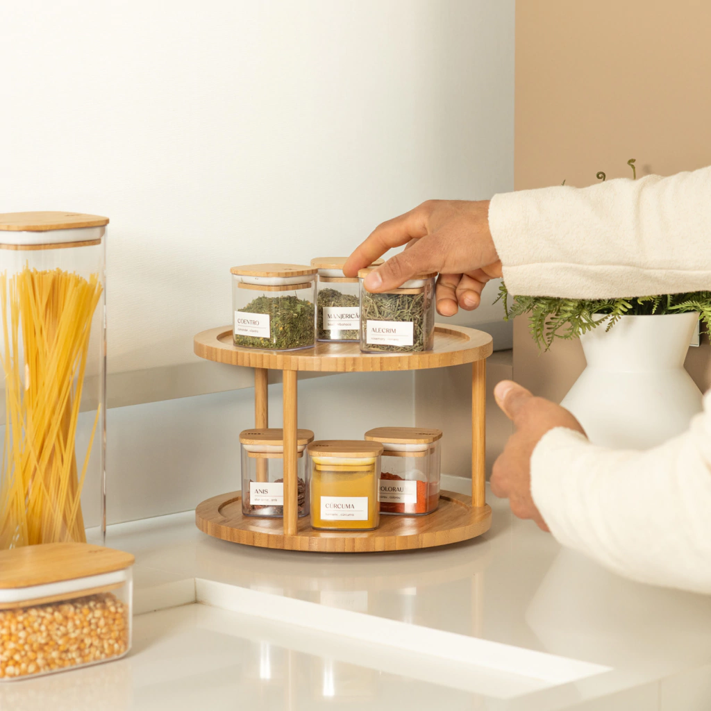 O Organizador Giratório Duplo Keep combina elegância e funcionalidade, ideal para maximizar o espaço e organizar com praticidade. Com 2 andares giratórios, ele facilita o acesso aos itens, tornando-o perfeito para cozinhas, despensas, banheiros e áreas de armazenamento. Feito de bambu sustentável, além de bonito, é uma escolha consciente para sua casa. A Linha Keep eleva a organização do seu ambiente, trazendo tranquilidade e bem-estar para o dia a dia.