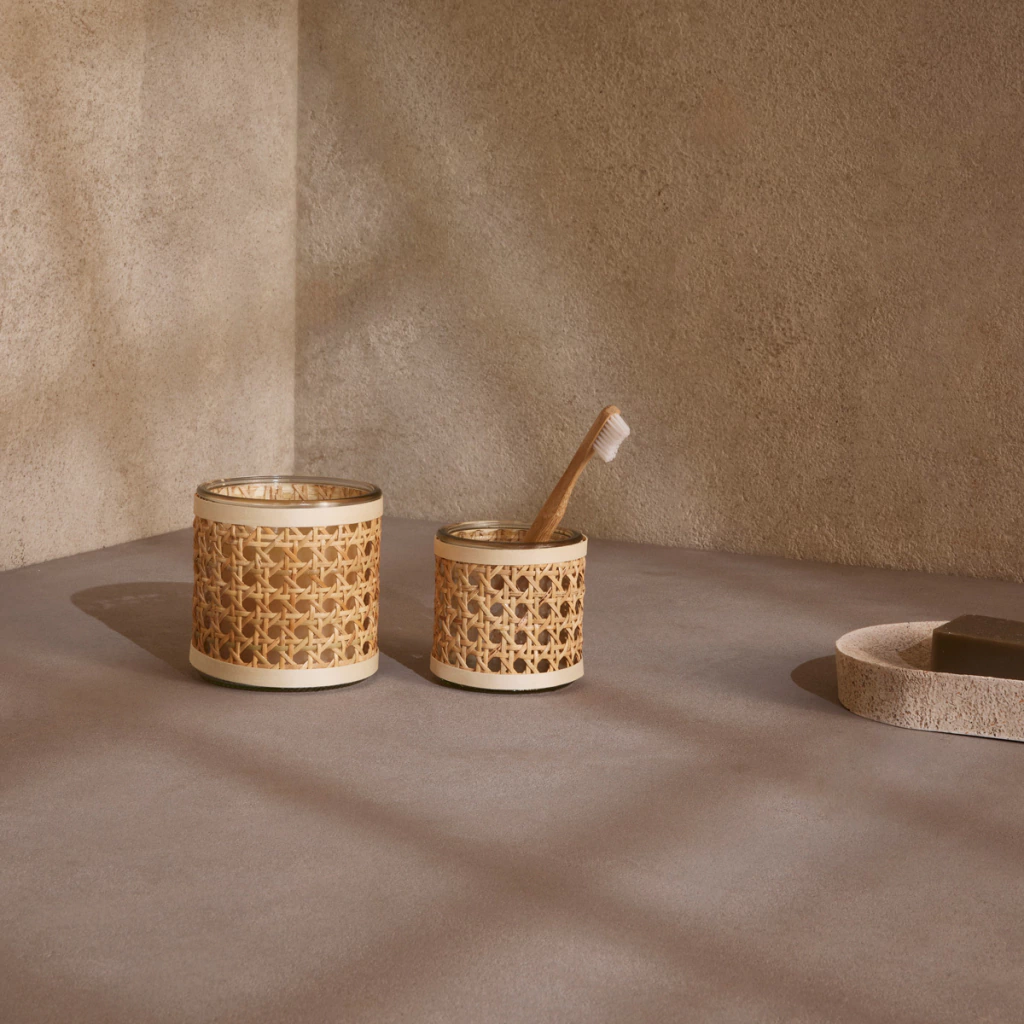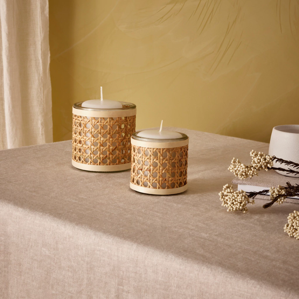 Inspirado nas tendências boho, rústica e natural, este porta velas se adapta facilmente a diferentes estilos de decoração, podendo também ser usado como pote decorativo, porta-pincéis ou suporte para pequenos objetos.
