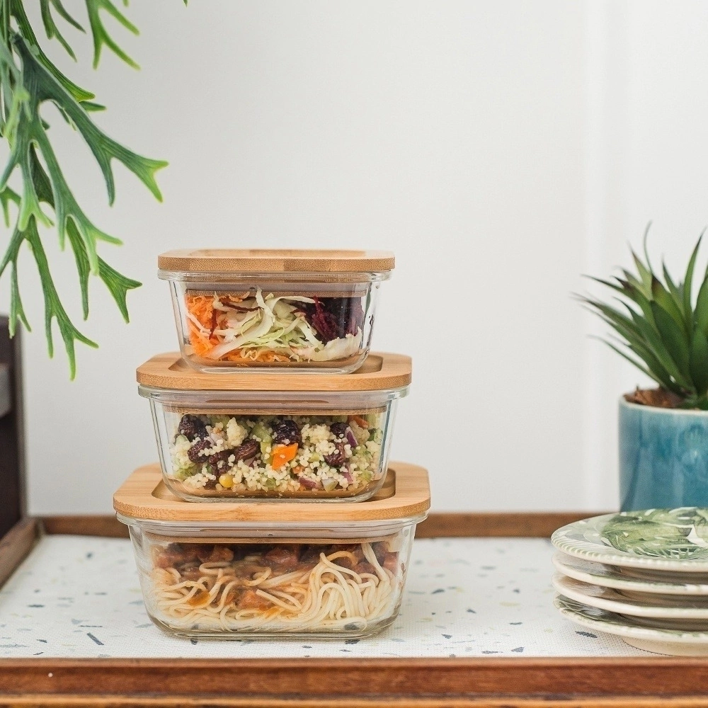 1 Pote Quadrado Borosilicato Tampa Bambu 800ml Oikos
