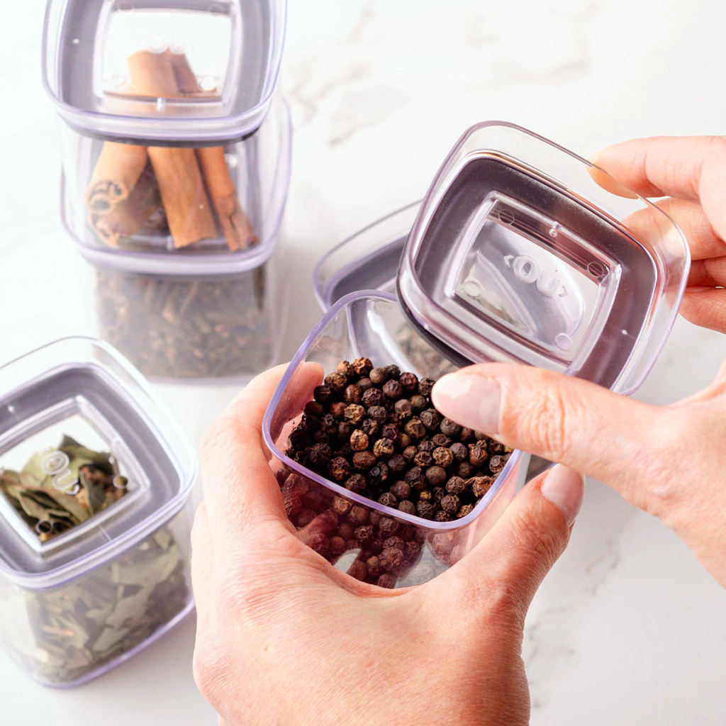 O Pote Hermético Organizador Block é ideal para armazenar temperos e pequenos alimentos secos, mantendo-os frescos e organizados. Seu design compacto e modular permite fácil empilhamento e acesso ao conteúdo. A vedação hermética com anel de silicone garante a conservação dos alimentos, enquanto a transparência facilita a visualização. Fabricado em PS - Poliestireno livre de BPA, é prático e seguro para uso diário.