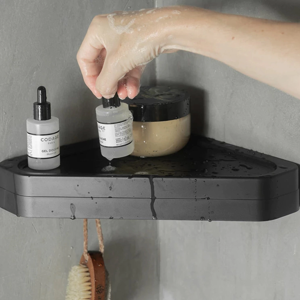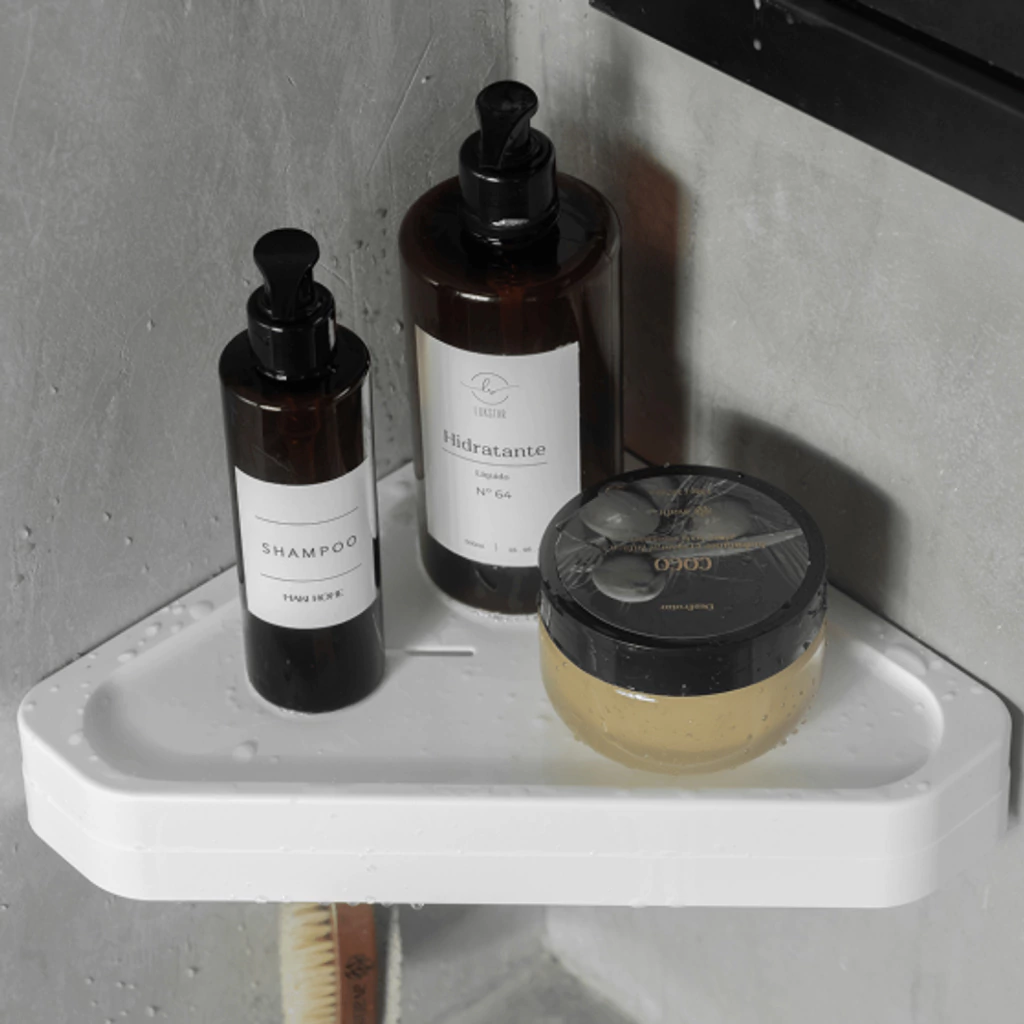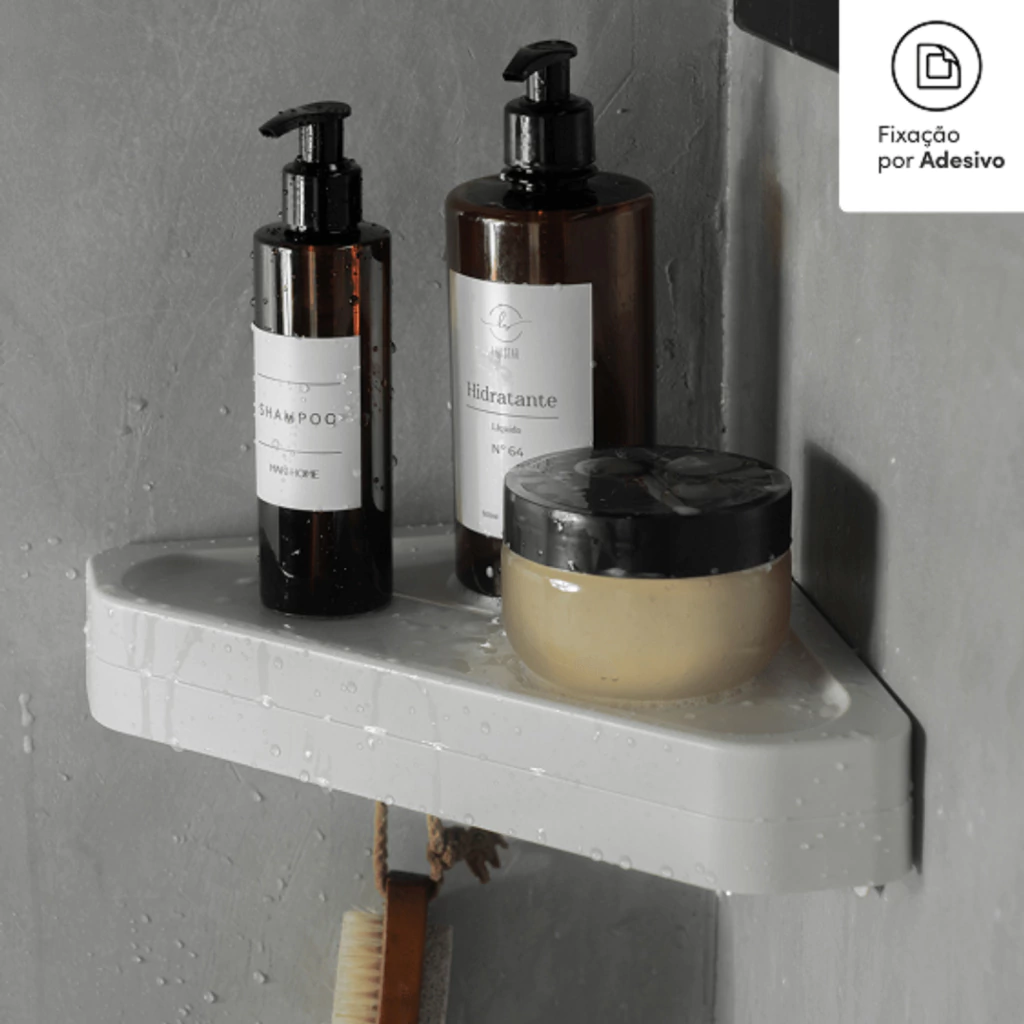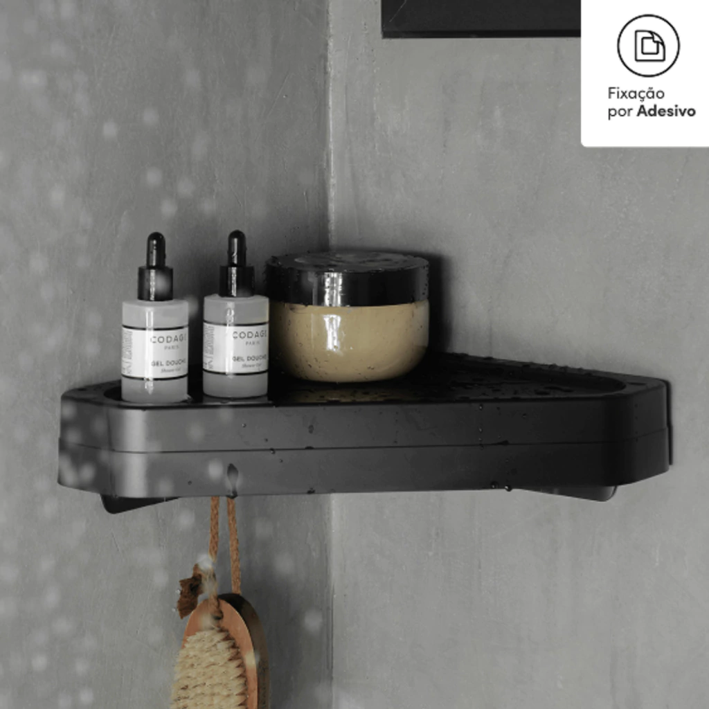 Transforme seu banheiro com a Prateleira de Canto Eleve da OU, projetada para otimizar pequenos espaços e organizar seus itens de higiene com elegância. Com uma superfície espaçosa, ela acomoda frascos, potes de shampoo e outros objetos, enquanto seus ganchos internos permitem pendurar esponjas, escovas de banho ou lâminas de barbear. A base foi desenvolvida para evitar o acúmulo de água e facilitar o escoamento, mantendo tudo sempre organizado. A instalação é prática e sem furos, graças ao adesivo Ultra Click, que oferece total liberdade para você personalizar seu ambiente.