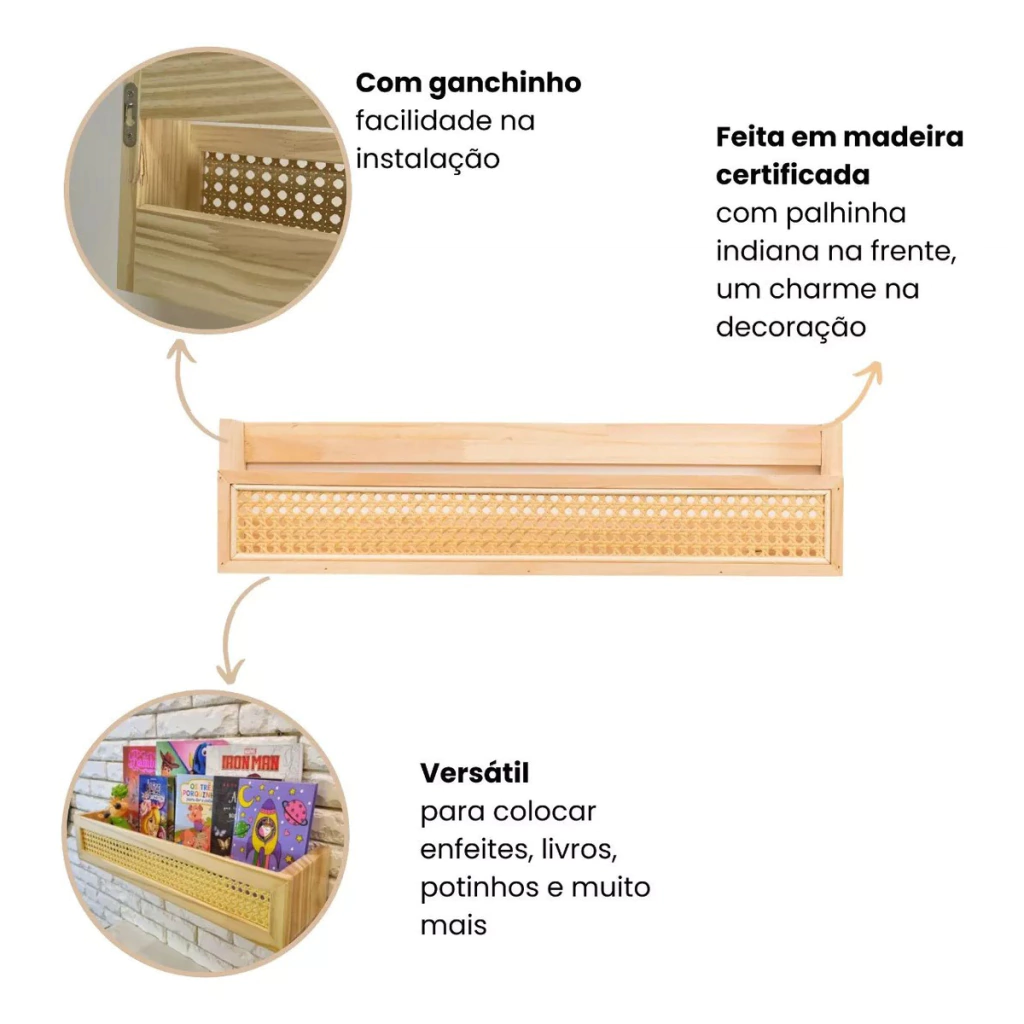 1 Prateleira em madeira e palhinha