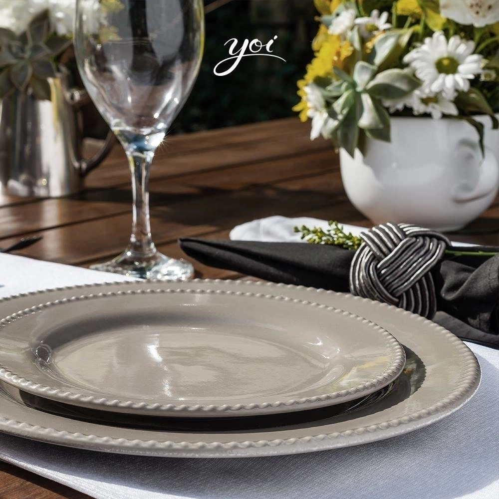 Prato raso Perla uma linha moderna e clássica, produzidos com cores suaves para complementar a sua mesa, podem ir ao lava-louças e micro-ondas.