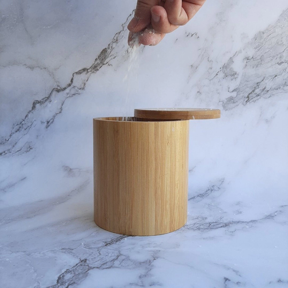 Saleiro da Mimo com estrutura 100% fabricada em bambu, matéria-prima sustentável e de ótima resistência. Possui formato redondo, tampa e impecável acabamento, sendo perfeito para armazenar sal com qualidade e praticidade. Um item com design simples e, ao mesmo tempo, elegante, indispensável para tornar sua rotina de criações culinárias ainda mais funcional!