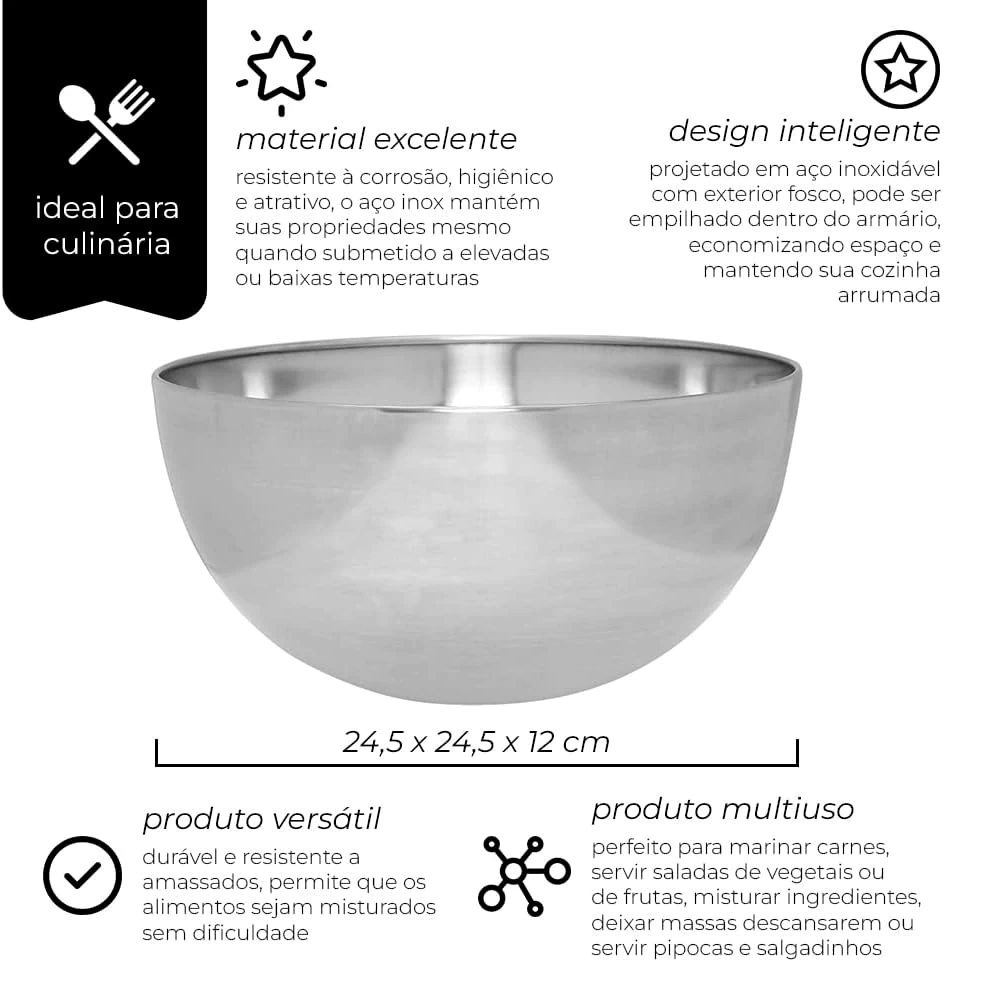 Versátil e funcional, pode ser usado como saladeira, tigela para massas, frutas, sobremesas ou até para o preparo de receitas. Um utensílio indispensável para uso doméstico ou profissional, unindo estilo e resistência em um só produto.